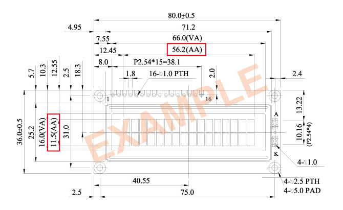 الرجاء استخدام أبعاد "المنطقة النشطة" من مواصفات المنتج في "العرض" و "الارتفاع" أدناه. لا تستخدم أبعاد "منطقة العرض" لحساب الأحجام القطرية. فيما يلي مثال كمرجع لك.