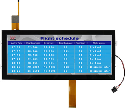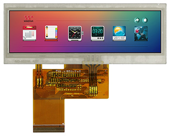 WF52ATLASDNT0 is a Bar type 5.2 inch TFT LCD display with Resistive Touch Panel, it's a whole new size and resolution of TFT display. This 5.2 inch TFT display offers high quality and colorful image made of resolution 480x128 pixels; it is especially suitable for industrial equipment & automotive applications, server system, audio system, POS system and advertising display.