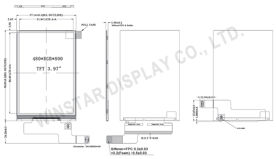WF40BTYAQMNN0 is a 3.97 inch IPS TFT-LCD module with resolution of 480x800 pixels. This TFT-LCD is featured with IPS panel which is having the advantages of wider viewing angle of Left:80 / Right:80 / Up:80 / Down:80 degree (typical) and wider temperature.
