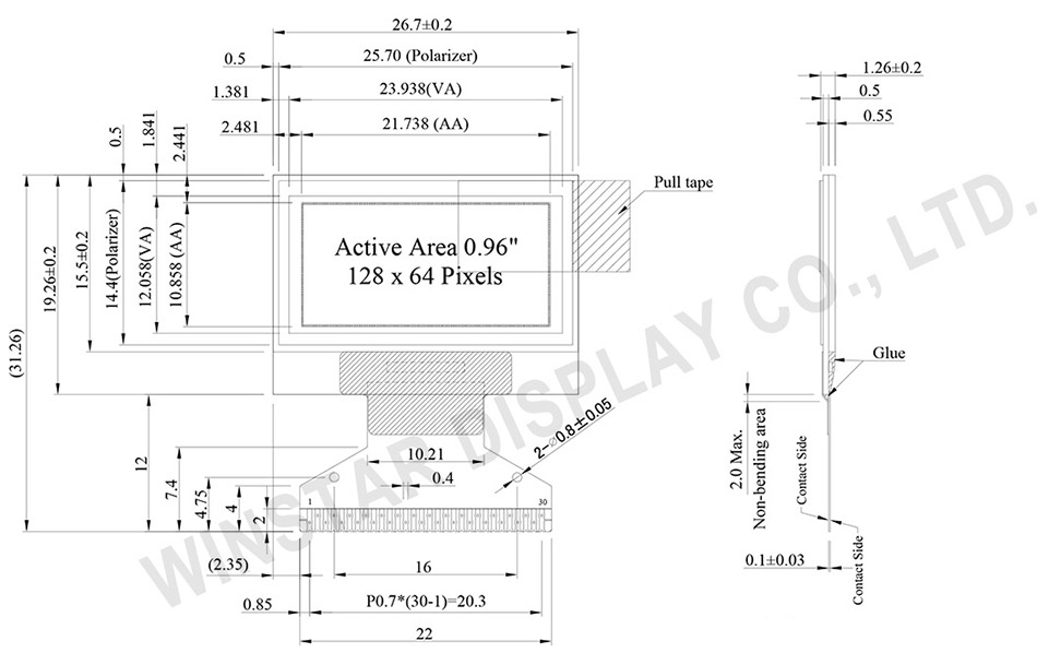 Thinner version 0.96 inch OLED WEO012864D with Sponge