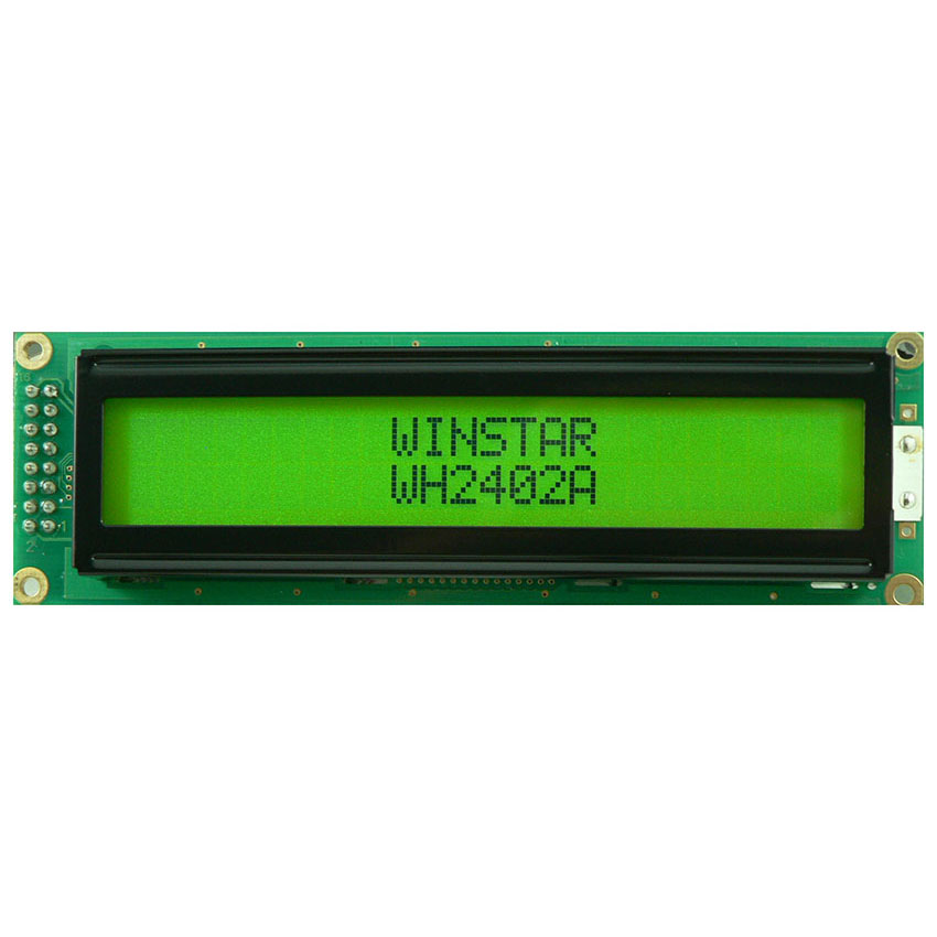 WH2402A is 24 characters by 2 lines LCD 24x2 display module which is built in with ST7066 controller IC; its default interface is 6800 4/8-bit parallel. This LCD display 24x2 model WH2402A is available for without backlight or with LED backlight options. This display LCD 24x 2 modules is available in various LCD panel colors including gray, yellow/green and blue LCD options. The LEDs can be driven by pin 1, pin 2, or pin 15 pin 16 or A/K. There are different character fonts/texts available for ST7066 IC including English/Japanese, English/West European, English/Scandinavian European, or English/Cyrillic (Russian) as options.