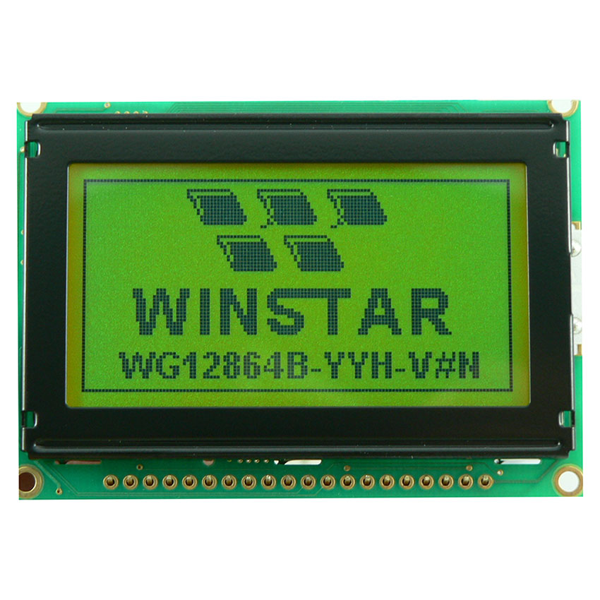 WG12864B is a mono 128x64 graphic LCD display, diagonal size 2.4 inch. WG12864A model is built in with NT7108 controller or equivalent IC; it supports 6800 8-bit parallel interface. This WG12864B 128x64 LCD module is 5V power supply. If you need negative voltage 3.3V power supply, please choose WG12864BP1. This 12864 Graphic LCD module is available for without backlight or with LED backlight options. WG12864B is available in various LCD panel colors including gray, yellow/green and blue LCD options. This model graphic LCD display can be operating at temperatures from -20℃ to +70℃; its storage temperatures range from -30℃ to +80℃.