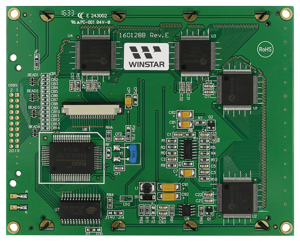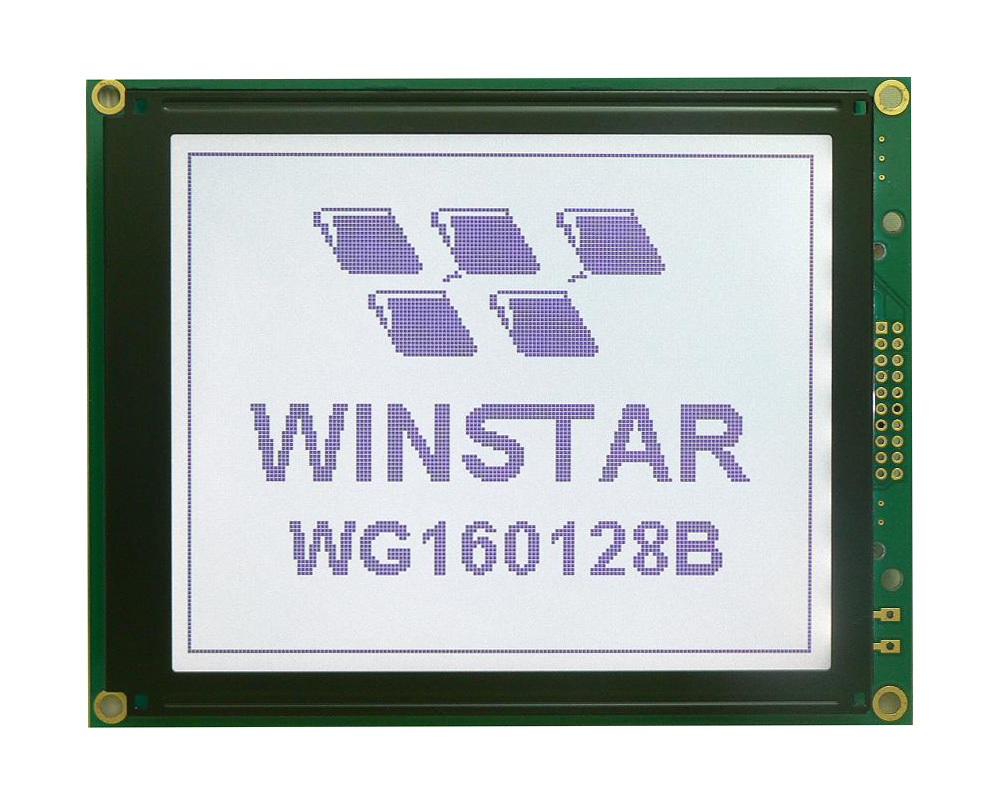WG160128B is a monochrome graphic LCD 160x128 dot matrix display module which is having the module dimension of 129x102 mm and AA size of 95.96x75.76 mm. This WG160128B model is built in with RA6963 controller; it communicates via 8080 8-bit parallel interface; 5V power supply or 3.3V negative voltage optional. This lcd display 160x128 module is available for graphic mode or Character Generator mode (Character font) optional. It can be operating at temperatures from -20℃ to +70℃; its storage temperatures range from -30℃ to +80℃.