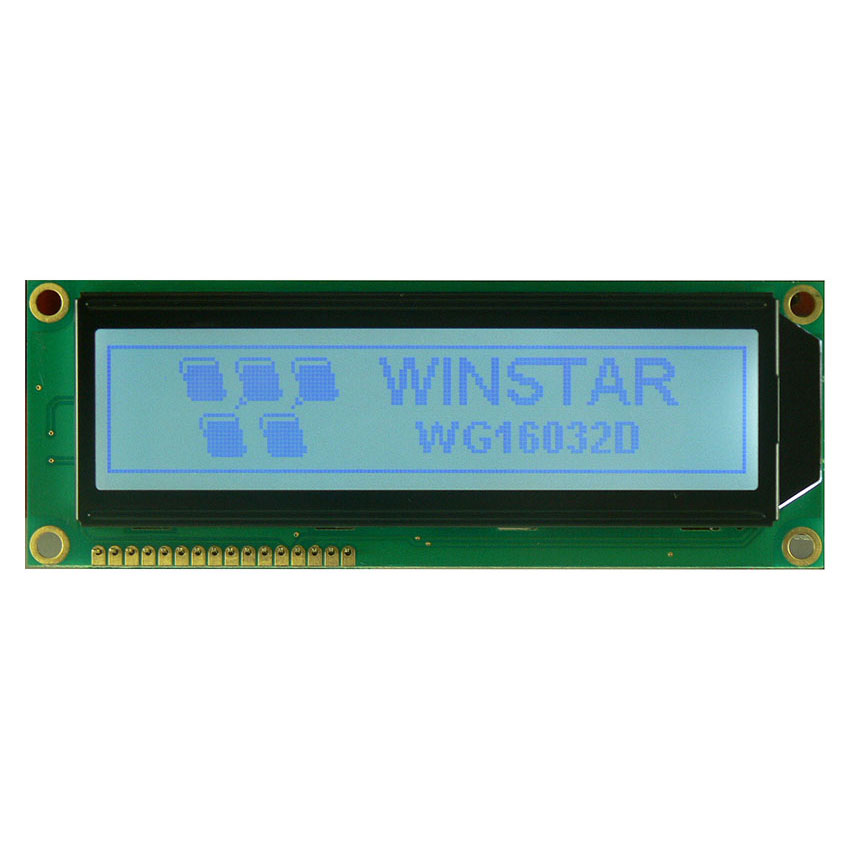Winstar standard 160x32 graphic LCD WG16032D type is built in ST7920 controller which supports 6800 interface, 4 Line SPI or 3 Line SPI (optional) interface. This LCD display has the same mechanical size as WH1602L with the outline size of 122.0 x 44.0.0 mm and VA size of 99.0 x 24.0 mm and the maximum thickness is 13.60 mm. The WG16032D is built in Traditional Chinese and Simplified Chinese fonts. This type of LCD module can be operating at temperatures from -20℃ to +70℃; its storage temperatures range from -30℃ to +80℃. The WG16032D3 is 3.3V power supply; WG16032D5 is 5V power supply.DRAWING