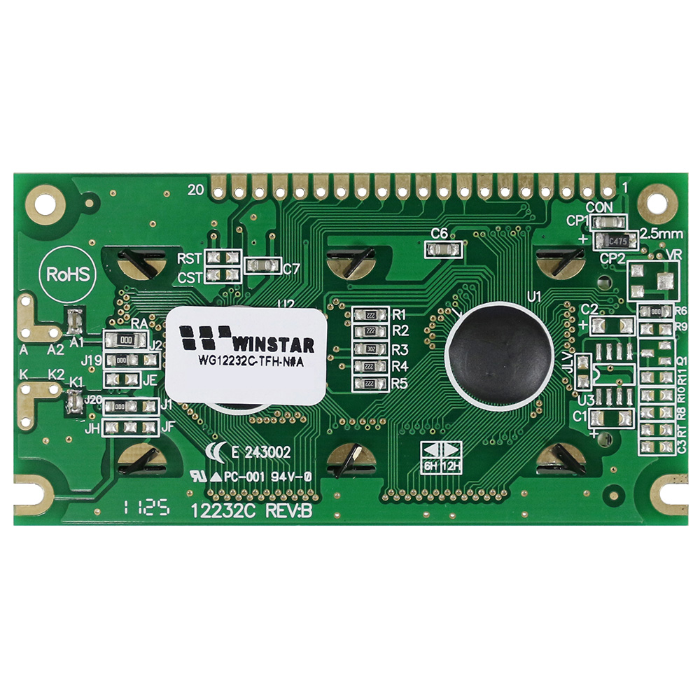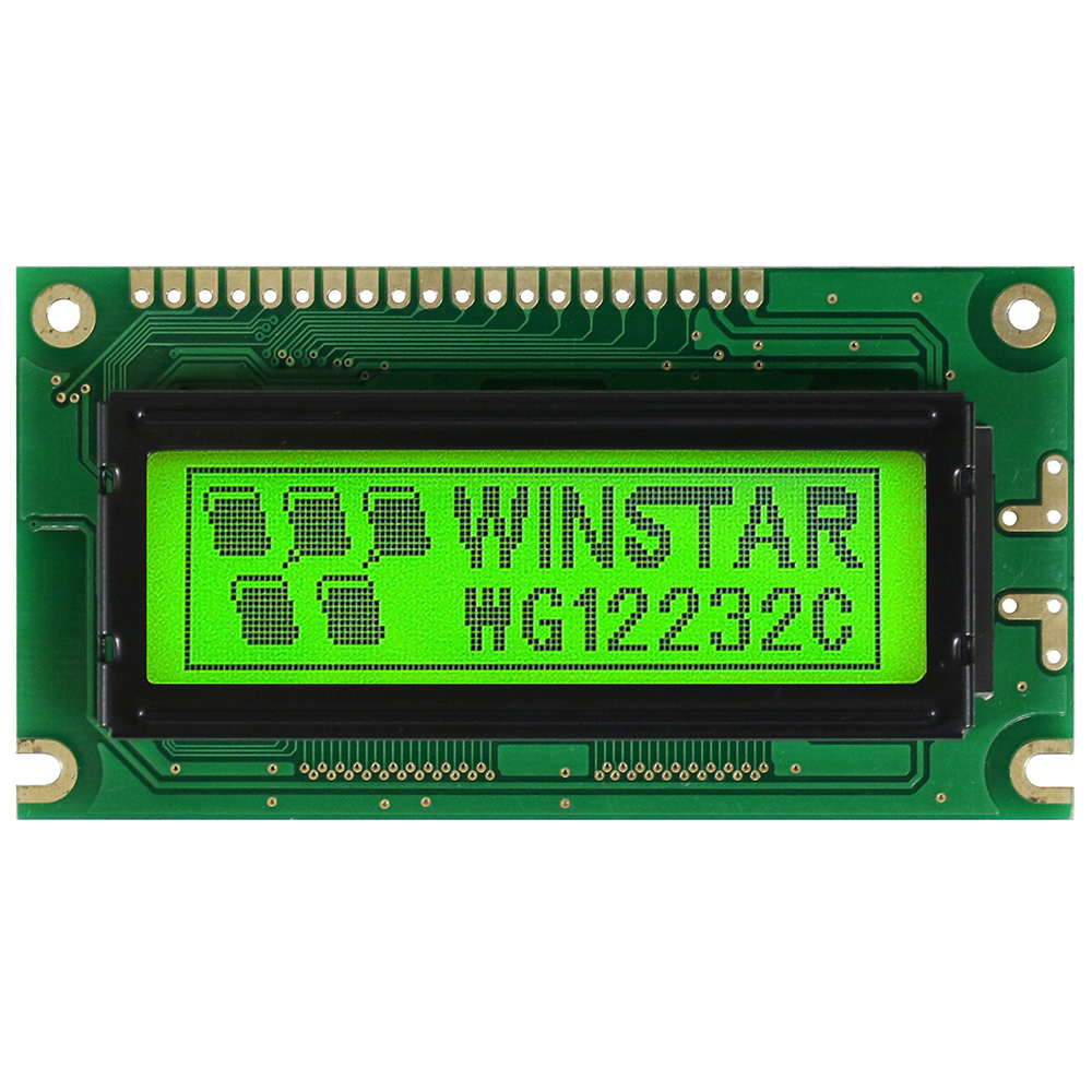 WG12232C is a monochrome 122x32 graphic LCD display module which is having the outline size 84 x 44 mm and viewing area size of 60 x 18 mm. This 122x32 graphic LCD display is built in with SBN1661G controller IC or compatible IC. It supports 6800 8-bit parallel interface and 5V power supply; it’s also Negative Voltage Generator 3V optional. The WG12232C type is available for External oscillation, if customers require internal oscillation, please choose WG12232A type.