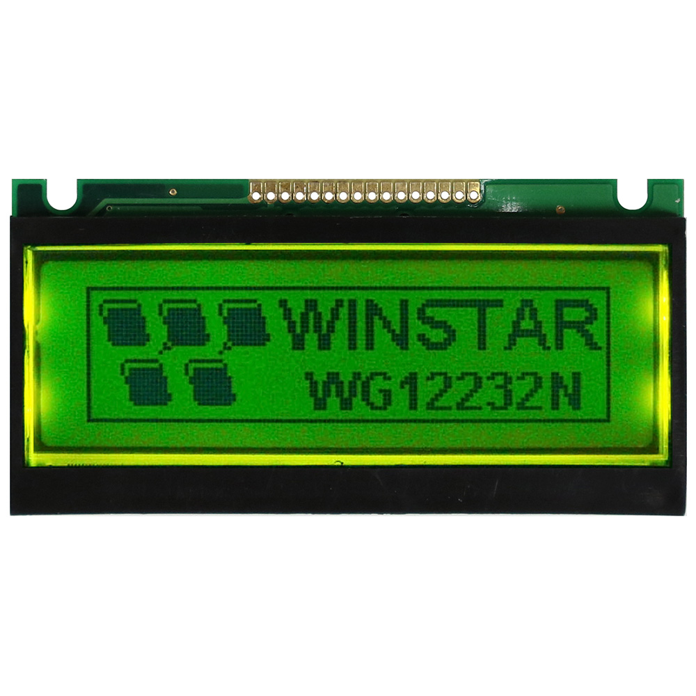 WG12232N is a monochrome 122x32 graphic LCD display module which is having the same mechanical size as WG12232D. This 122x32 graphic LCD display is built in with ST7920 controller IC which supports Traditional Chinese and Simplified Chinese Font. WG12232N supports 6800 8-bit parallel and SPI interface. This module can be operating at temperatures from -20℃ to +70℃; its storage temperatures range from -30℃ to +80℃.
