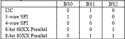| 10 | BS0 | Communicating Protocol Select These pins are MCU interface selection input. See the following table: ![]() |