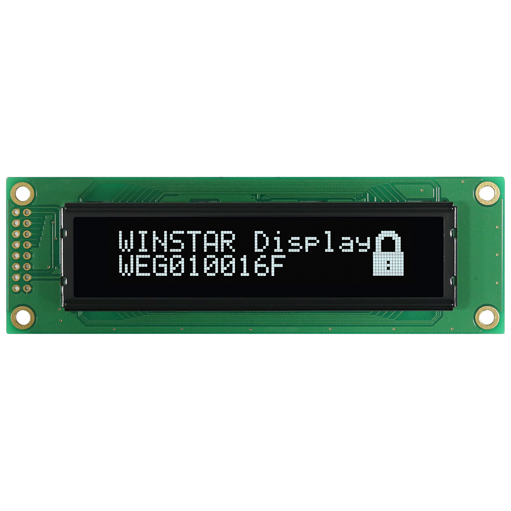 WEG010016F graphic OLED display module has a very high contrast ratio (2000:1) with an extremely dark background versus the lit-up pixels on the display. This mono OLED display features a very wide viewing angle up to 175° and is able to communicate using either an 8 bit or 4 bit parallel microcontroller interface.