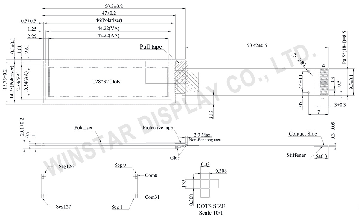WEO012832G is a 1.71 inch passive matrix OLED display module which is made of 128x32 dots. The module is built in with SSD1307 IC, it supports I2C and 4-Wire SPI interface, 3V power supply, 1/32 duty cycle.