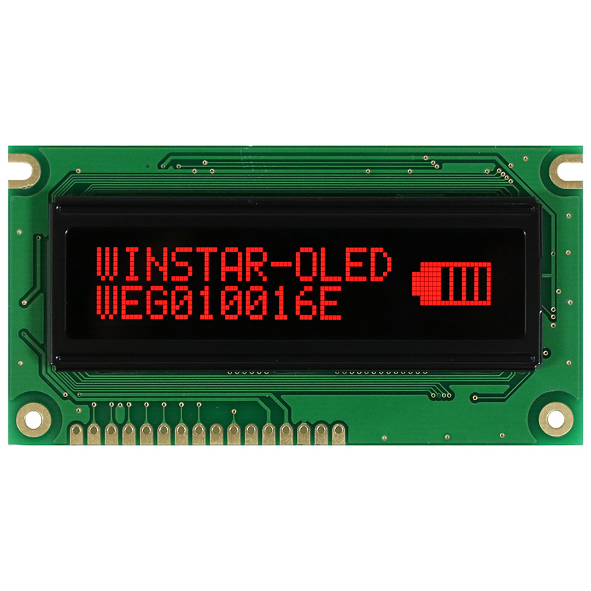 Winstar WEG010016E is 2.4" OLED Display which is made of 100x16 pixels. This display is built-in WS0010 controller is able to communicate using either an 8 bit or 4 bit parallel microcontroller interface. This 2.4 inch OLED display has different interface available, default 6800 or option 8080. The operating temperature and storage temperature ranges of the WEG010016E are -40 ℃ ~ 80 ℃. The WEG010016E module and WEG010016A, WEG010016C, WEG010016D are all have the same OLED panel size, but using different PCB design. The customers can choose best module for their applications.