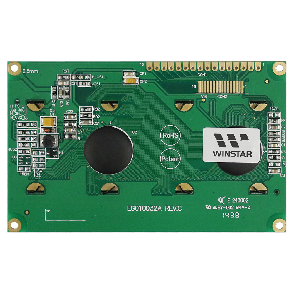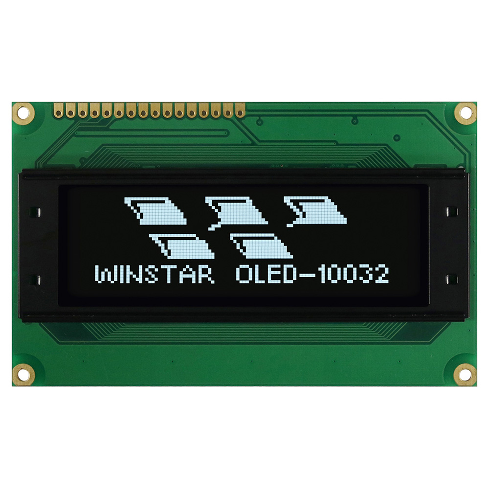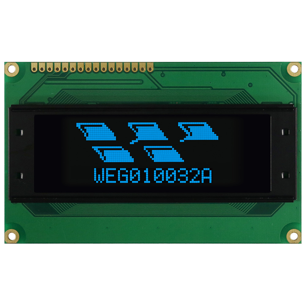 The 2.44" OLED displays of WEG010032A which has the same outline size of 98.00 x 60.00 mm, VA size of 77.00 x 25.20 mm and pin out as Winstar STN LCD standard item of WH2004A. WEG010032A is the equivalent Graphic type of WEH002004A. If your applications need Graphic mode to display the contents, you can choose WEG010032A which featured with display format of 100 x 32 dots. The typical power supply of this series is 5 voltage and the interface is parallel 4 /8 bit 6800 (optional 8080 or serial SPI).