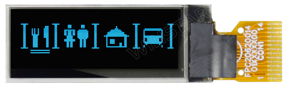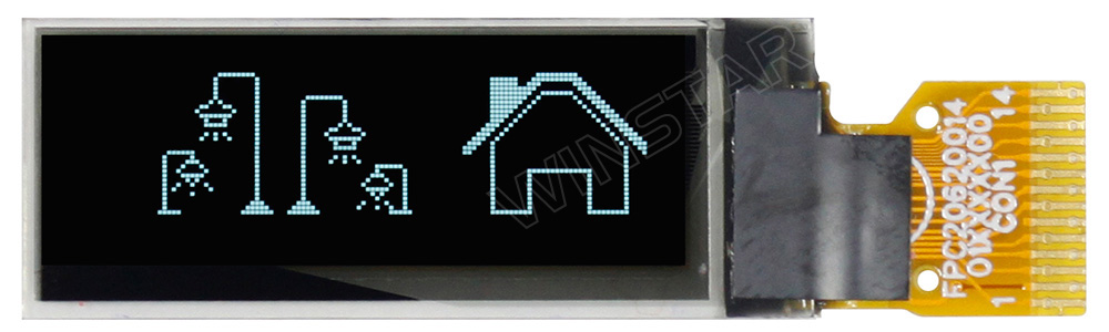 Winstar WEO012832F is a popular small OLED display which is made of 128x32 pixels, diagonal size 0.91 inch, it's very suitable for wearable device. The WEO012832F has the same mechanical dimension as WEO012832D but having different pin assignment and supports different interface. WEO012832F module is built in with SSD1306 controller IC; it supports I2C interface and having 14 pins FPC pintout. As to the WEO012832D module is also built in with SSD1306 IC but it communicates via SPI interface and having 15 pins FPC pinout.