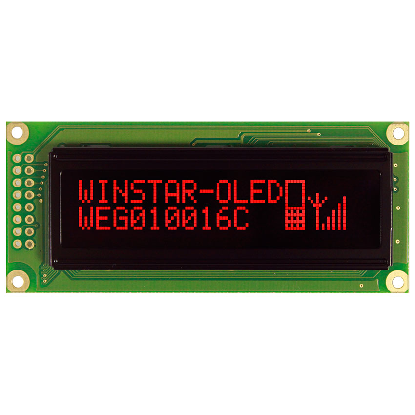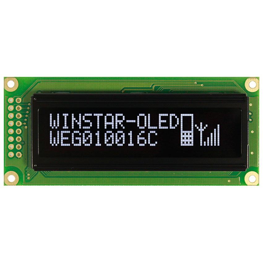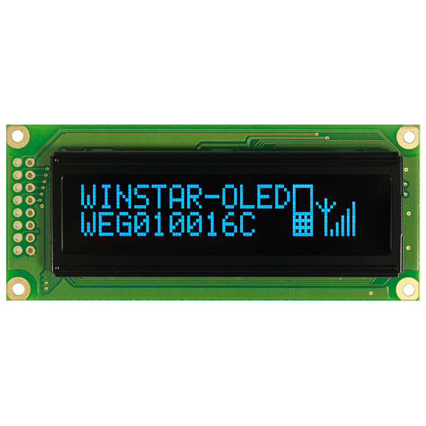 WEG010016C is a Winstar OLED module which is made of 100 x 16 dots individual mono color. These 100x16 OLED display modules are having diagonal size 2.4” which are lightweight, low power consumption and have very fast response time. There are different interfaces optional; it is default 6800, available options 8080 and SPI. The module is made of COB OLEDs have the advantages of easily fixed modules on customers’ applications because of having PCB board on it.