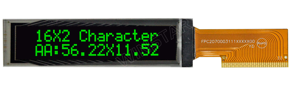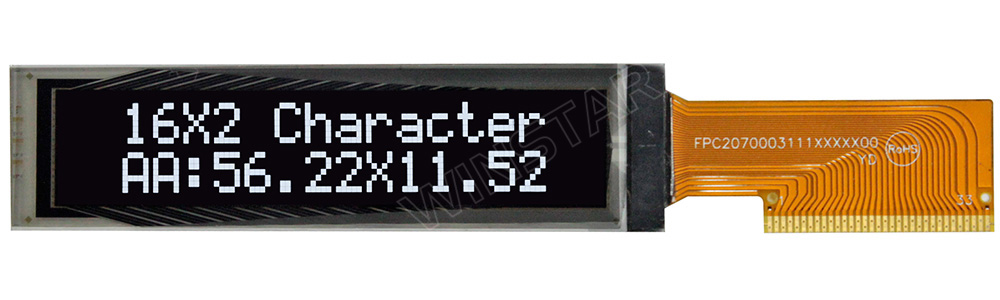 Winstar WEO001602C is a COG 16 Character x 2 lines OLED display module. This 16x2 OLED display is built-in SSD1311 controller IC; it supports 6800/8080 8-bit parallel and I2C/4-wire serial interface. We suggest customers to consider using this low power 16x2 character OLED to upgrade your existing STN character display.