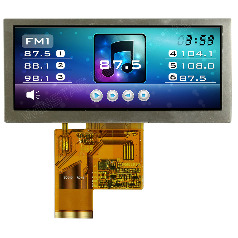 Winstar WF46A is 4.6 inch TFT LCD display module made of 800x320 dots pixel. WF46A model is having the module dimension of 120.7x56.16 mm and Active area size of 108x43.2 mm. This WF46A TFT LCD display is without built in controller on module. It supports RGB interface, 3.3V (typical) power supply, supports DE mode and Sync mode. It’s View Angle (U/D/R/L) is 50/70/70/70 (typical); brightness is 400 cd/m2. This WF46A TFT module can be used in information display device, server system, audio system, industrial device, security equipment which requires display in high quality and colorful image.