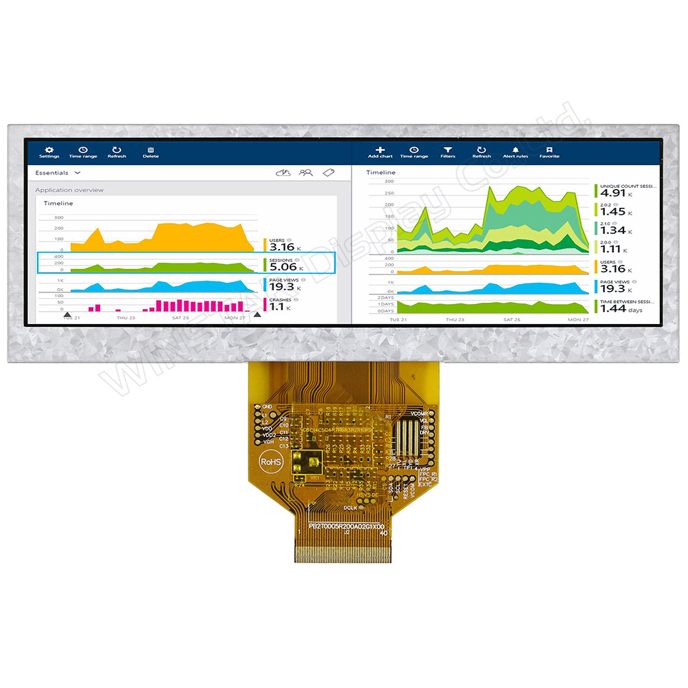 Winstar Display released a stretched bar type 5.2"TFT LCD display, it's a new size and resolution of TFT display. This new 5.2 inch TFT WF52A LCD display offers high quality and colorful image made of resolution 480x128 pixels; it is especially suitable for industrial equipment & automotive applications, server system, POS system and advertising display.