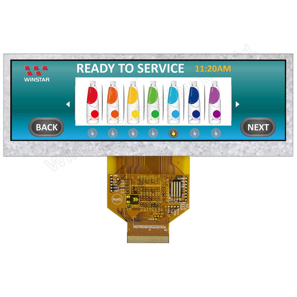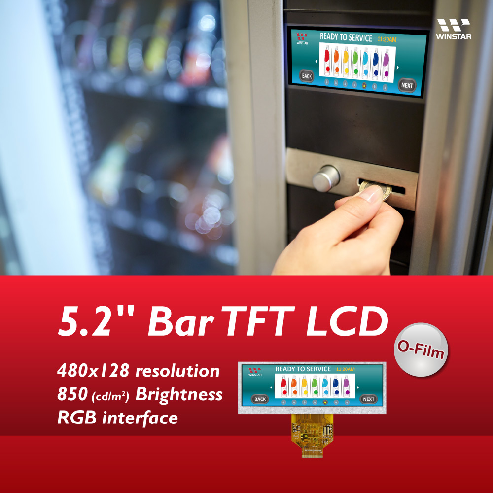 This 5.2 inch bar type TFT WF52A LCD display offers high quality and colorful image made of resolution 480x128 pixels; it is especially suitable for industrial equipment & automotive applications, server system, POS system, dynamic information displays, audio system and advertising display.