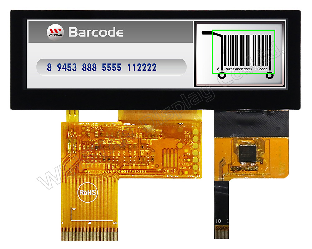 WF39BTLASDNGA is Winstar 3.9” Bar type WF39B series TFT display with Capacitive Touch Panel. This model is featured with resolution 480x128 pixels; built in with Driver IC HX8278, it supports RGB interface; 3.3V (typical) power supply; supports SYNC mode or DE mode, default SYNC mode. Its luminance is 400 Nits; Contrast ratio of 500:1, gray scale inversion direction 12 o’clock. It can be operating at temperatures from -20℃ to +70℃; its storage temperatures range from -30℃ to +80℃.