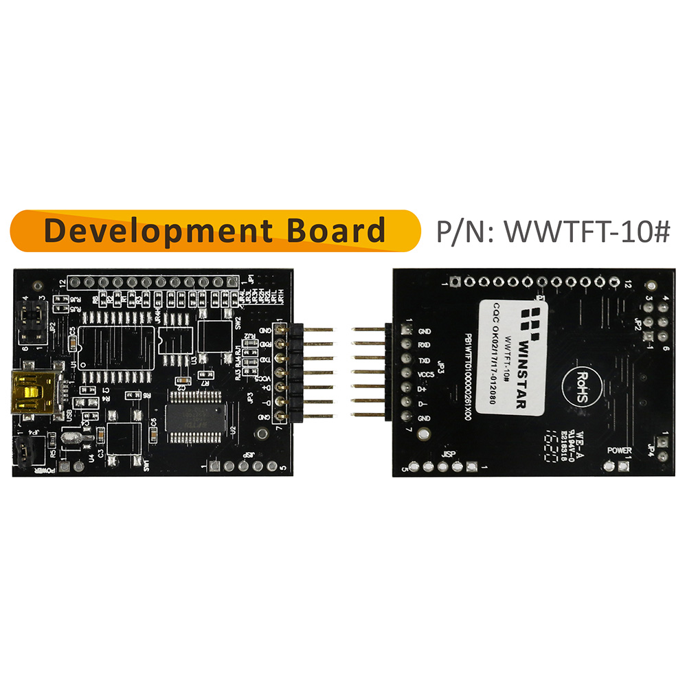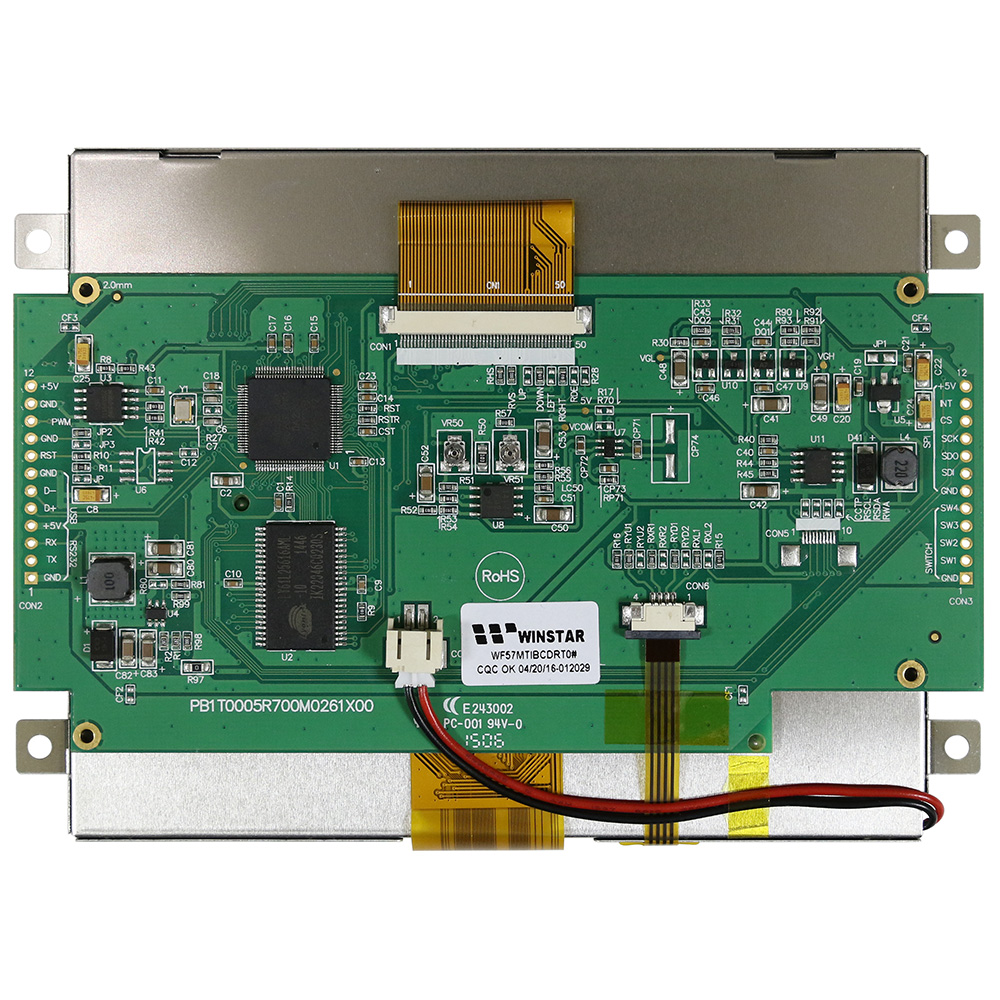 This 5.7" M Series WF57MTIBCDRT0 is Clever System TFT LCD module with resistive touch screen. This TFT-LCD dimension is 141.12 x 101.55 mm and AA size of 115.2 x 86.4 mm. Operating temperature ranges include standard -20 to +70℃ and wide -30 to +80℃. Winstar designs an optional development board which Part no. is WWTFT-10# for customers to accelerate the project for test function.