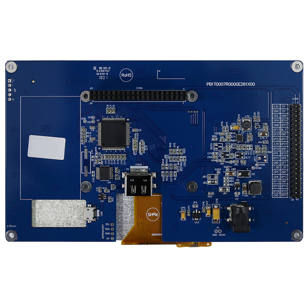 WF70GTIFGDHTV is a 7 inch medium-sized for HDMI signal TFT-LCD display, made of resolution 800x480 dots. This 7 inch TFT Display comes with a board which supports HDMI signal interface and a 40-pin connector on it; WF70GTIFGDHTV is designed to make Raspberry Pi usage become easily. This WF70GTIFGDHTV TFT display has a USB interface Resistive Touch screen overlay on TFT panel. Also the Capacitive Touch Panel is available for option. We designed a connector part no. WWHDMI-00# for option, the customers can use it to connect WF70GTIFGDHTV module with your Raspberry Pi directly. If customers do not require a 40-pin header connector on board, please choose WF70GTIFGDHT0.