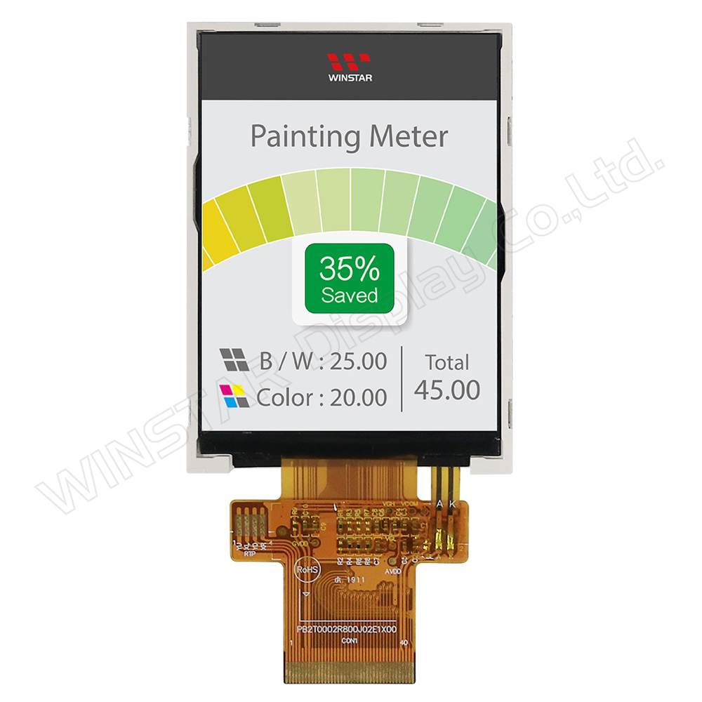 WF28J is a 2.8 inch wider view angle IPS TFT LCD module, with resolution 240x320 pixels. WF28J module is a portrait mode IPS TFT-LCD; this module is built in with ILI9341 controller IC; it supports MCU 8-bit/16-bit or SPI interface, contrast ratio 800 (typical value). The brightness of WF28JTYAJDNN0 is 500 nits (typical value). This 2.8” IPS TFT has a wider viewing angle than TN TFT, the view angle is Left:80 / Right:80 / Up:80 / Down:80 degree (typical value). The supply voltage for interface logic (IOVCC) of WF28J model is from 1.65V to 3.3V, supply for analog circuit is from 2.5V ~3.3V, normally black, transmissive LCD type, aspect ratio 3:4, glare surface glass. It can be operating at temperatures from -20℃ to +70℃ and storage temperatures from -30℃ to +80℃.