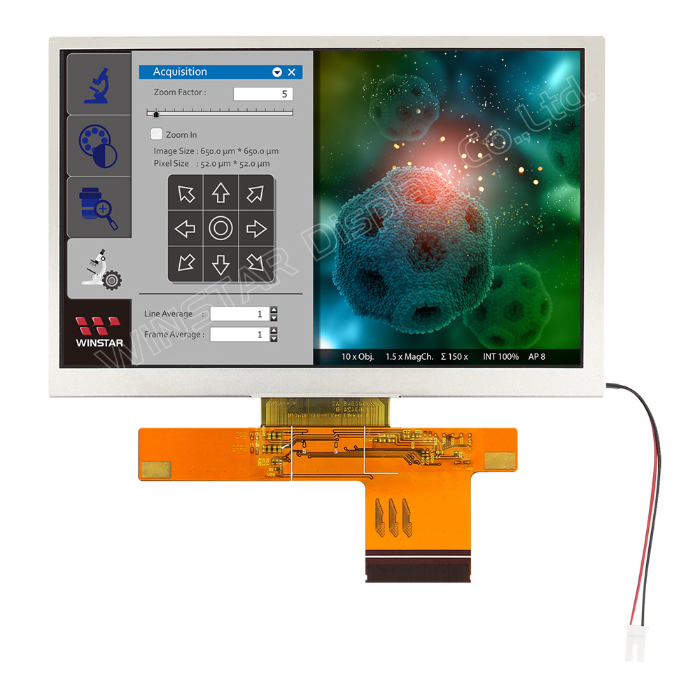 WF70A4SWAGDNN0 is a 7 inch super-bright, wider operating temperatures IPS TFT LCD module, with WVGA 800x480 pixels. This TFT model is built in with NT51632T and NT52601TT driver IC, it supports 24-bit RGB interface, brightness 1000 nits (typical value).