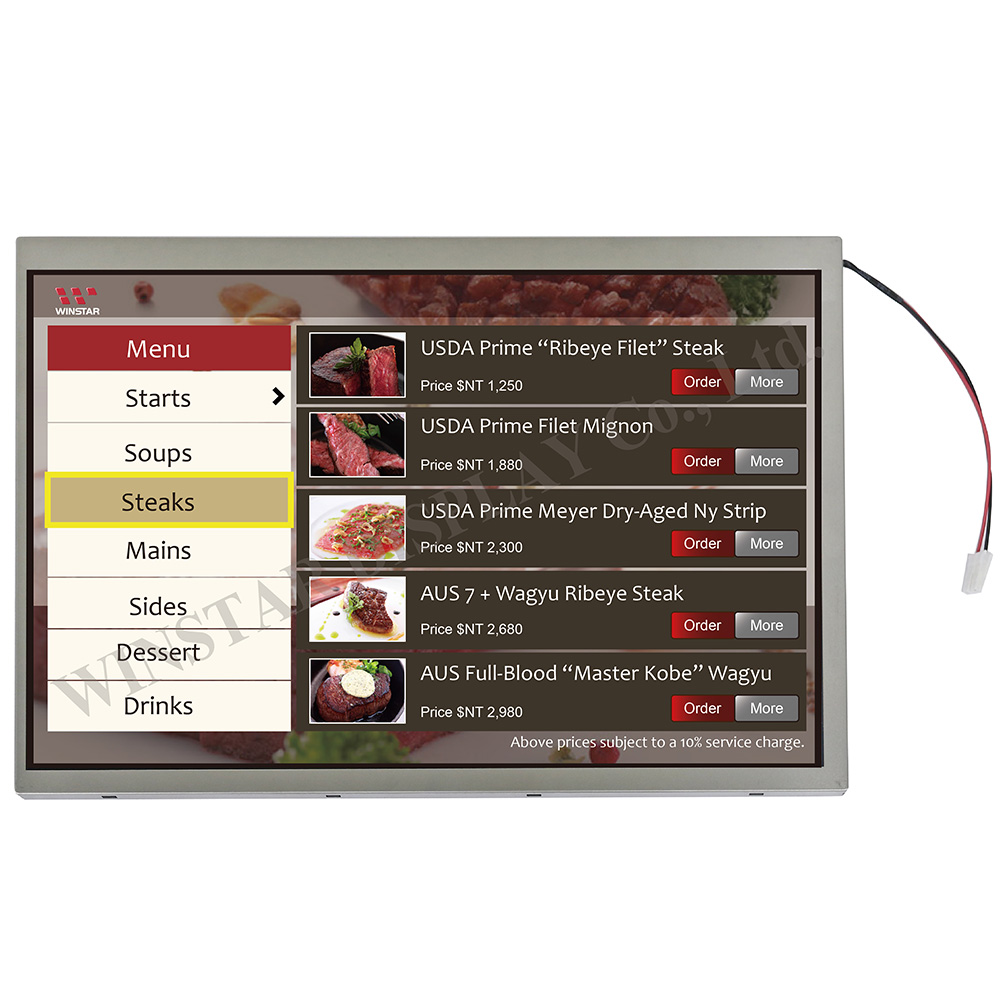 The power supply voltage (VDD) for WF101F is from 2.3V to 2.7V, typical value 2.5V. This LVDS TFT LCD module is featured with High Brightness 1000 ~ 1100 cd/m2 and wider view angle range of Left:85 / Right:85 / Up:85 / Down:85 degree (typical). It can be operating at temperatures from -20℃ to +70 ℃ and storage temperatures from -20 to +70 ℃. This WF101F is available with Projected Capacitive Touch Panel (PCAP) and Resistive Touch Panel (RTP) options which are very suitable for HMI (Human-machine Interaction) applications or POS system, etc.