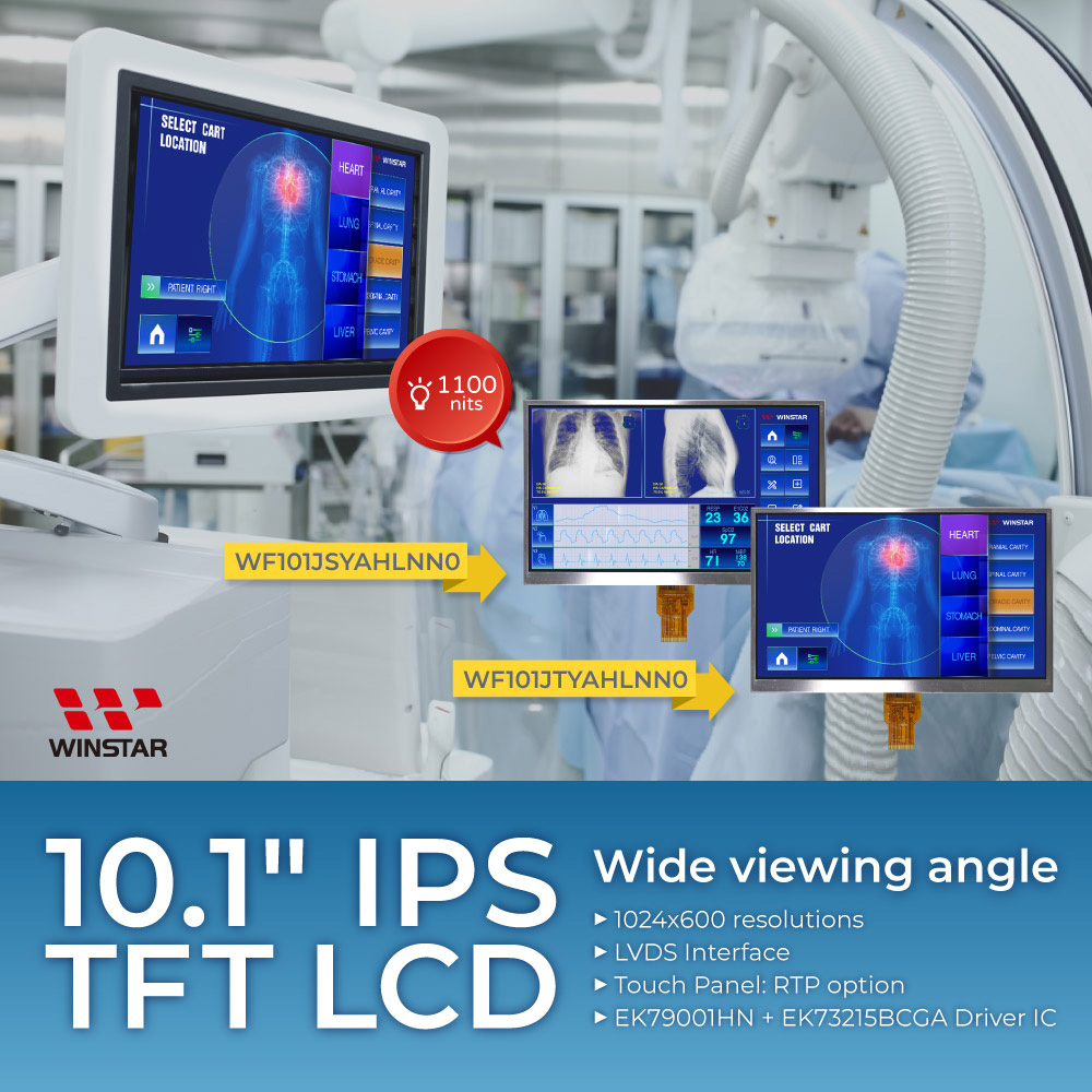 WF101JSYAHLNN0 is a landscape mode 10.1 inch high brightness IPS TFT LCD module, it featured with resolution 1024x600 pixels. WF101J model is built in with EK79001HN and EK73215BCGA driver ICs, it supports LVDS interface, contrast ratio 800 (typical value), brightness 1100 nits (typical value), aspect ratio 16:9, anti-glare surface glass, normally black, transmissive LCD type. This 10.1" IPS TFT has a wider viewing angle than TN TFT, it's view angle is Left:85 / Right:85 / Up:85 / Down:85 degree (typical value).