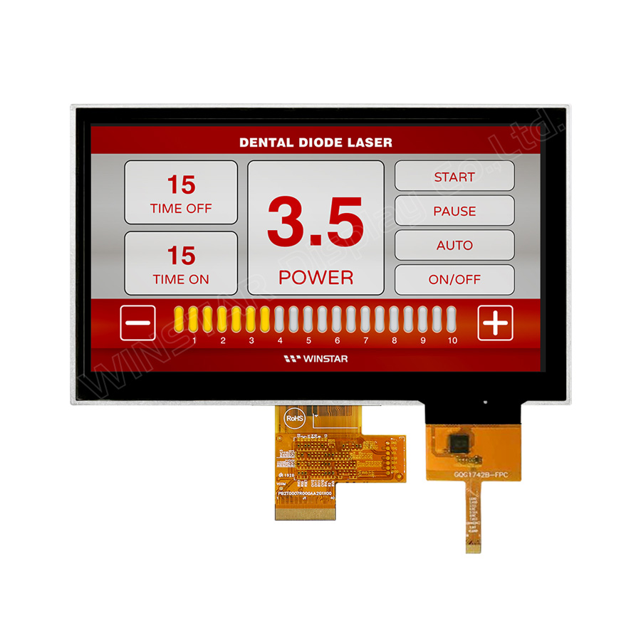The supply voltage (VDD) of WF70A8SYAHLNG0 is from 3.0V to 3.6V, typical value 3.3V. It can be operating at temperatures from -20℃ to +70℃ and storage temperatures from -30℃ to +80℃. We also offer High Brightness WF70A8 model with Resistive Touch Panel (RTP) option which P/N is WF70A8SYAHLNT0.