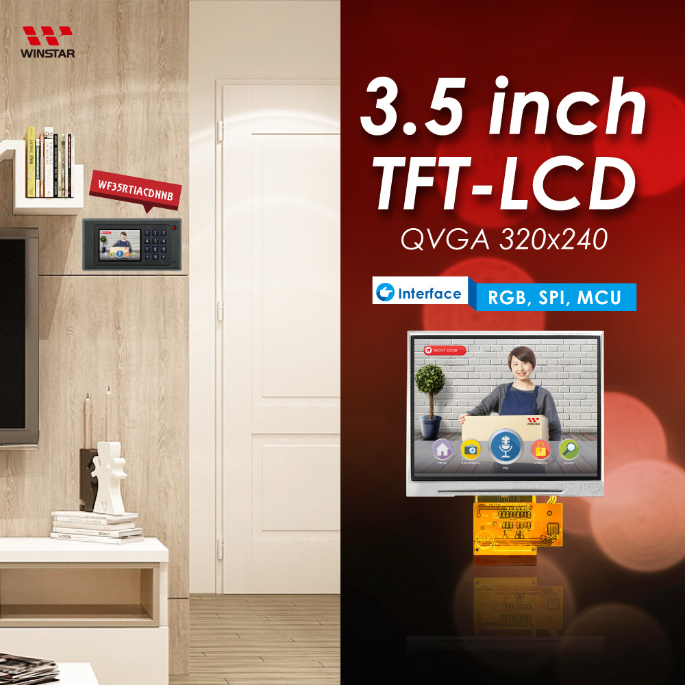 WF35R TFT-LCD module is landscape mode with brightness 400 nits (typical value). The module also is available for Resistive Touch Screen and Projected Capacitive Touch Screen optional. WF35R can be operating at temperatures from -20℃ to +70℃; its storage temperatures range from -30℃ to +80℃.