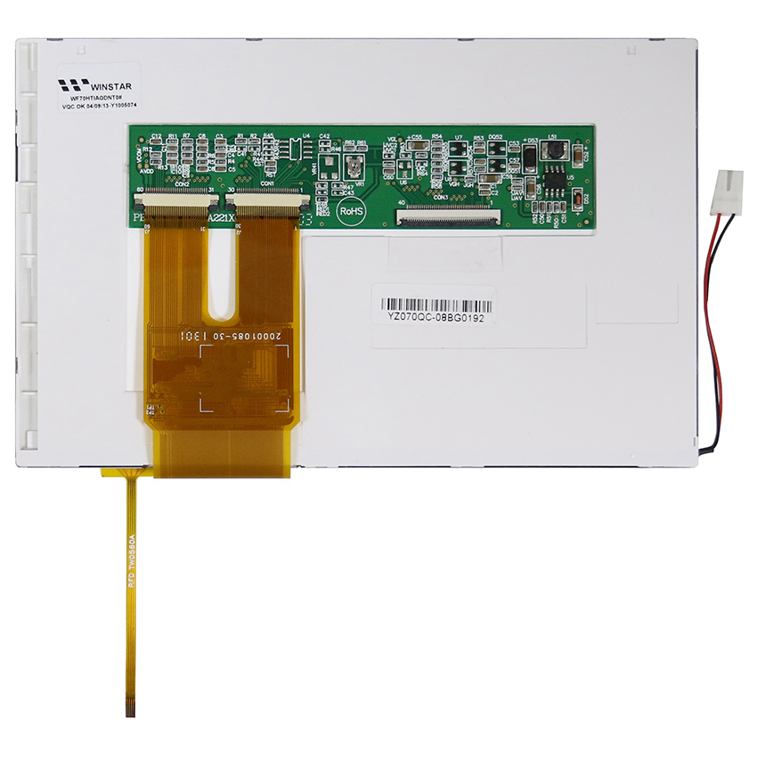 Winstar Display released a standard TFT 7.0" model no. WF70H which is compatible with the existing WF70A. The WF70A and WF70H have the same outline dimension, AA size, interface and pin assignment; but which two models have a little difference at back side on appearance. WF70HTIAGDNT0 is a 7 inch TFT LCD Panel Module with RTP touch screen. The disiplay has the outline dimension of 165 x 104.6 mm and active area size of 152.4 x 91.44 mm.