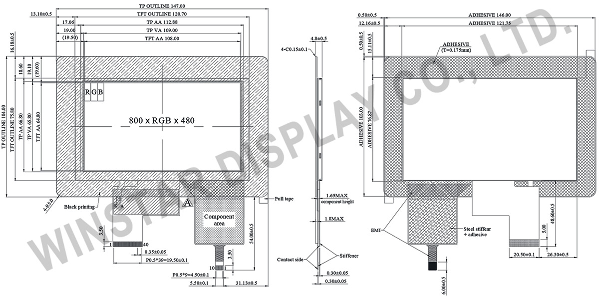 | Module dimension | 147.0(W) ×104.0(H) ×4.8mm | mm |
