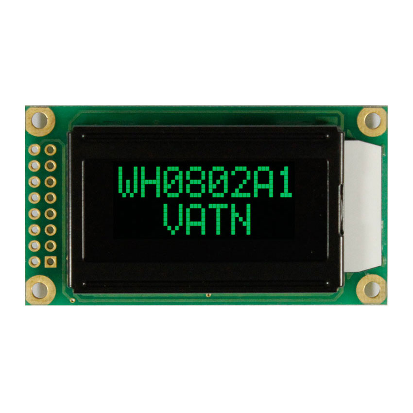 Winstar WH0802A1-GLL green LCD display module is a 8 character by 2 line LCD display with a black background and green LED backlight. This model VATN LCD display is with the outline dimension of 58x32 mm. There are different interface optional; it is available options 6800, SPI and I2C.