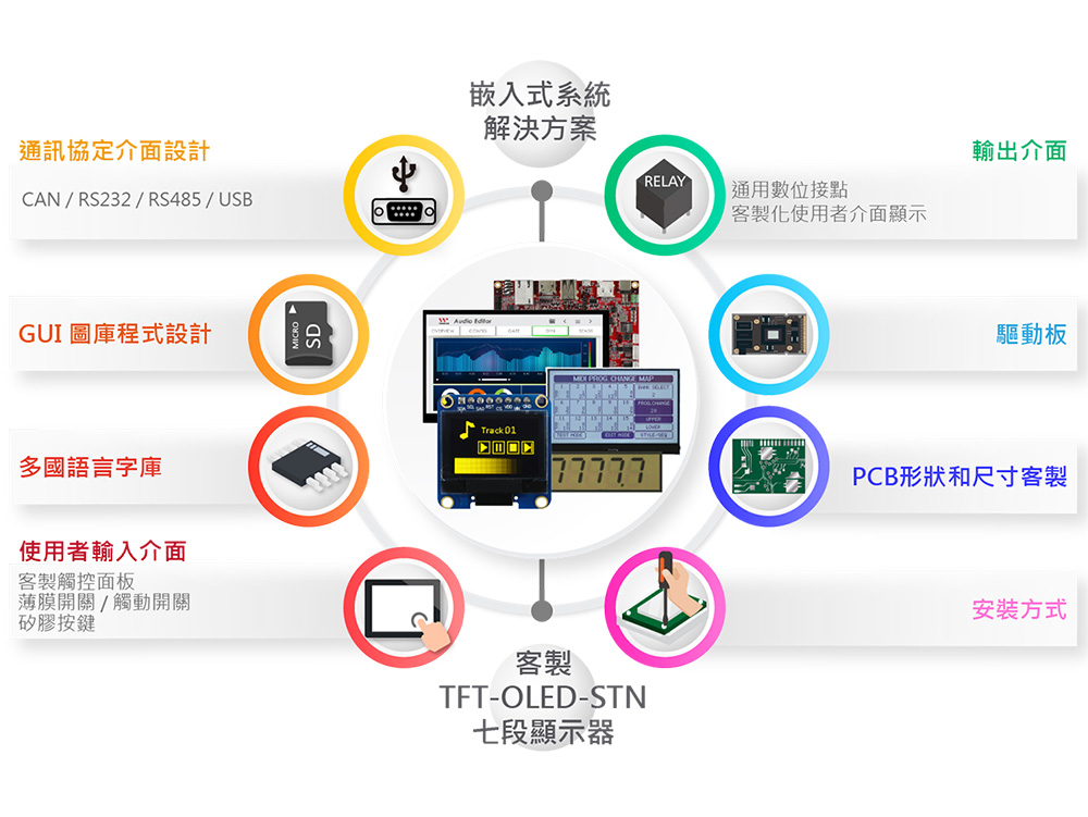 华凌光电持续努力研发最符合客户需求的系统整合服务方案以满足客户需求,一步一步为客户走在前端,协助客户评估设计最适当、高效率、低成本的解决方案为目标。Winstar系统整合结合核心技术团队并秉持服务精神,解决客户产品设计整合上需求,以下为Winstar系统整合服务项目: